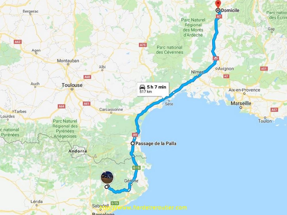 Descendre avec une seul lot à Nogaro ne serait pas eco responsable, donc, on bourre un peu la semi pour faire de la place et prendre 2 énormes palettes d'arbres, quand je pense que j'ai nettoyé mon plancher à la brosse à dents.... J'aurai dû m'en douter. Le temps de faire les pleins prendre un café avec Régis, entendre Julie qui est pas contente parce qu'il y en a marre d'avoir un chef qui porte les croissants tous les matins au bureau, il est déjà presque 19h quand je repars. Je sais pas trop ce qu'il s'est passé en Catalogne mais je croise presque autant de camions que le dimanche quand ils sont tous lachés à 22h, les parkings dégueulent de camions. Mes craintes se confirment quand je vais pour me garer au centre routier à Narbonne, c'est FULL de chez FULL. L'alarme des 4h15 a sonné déjà, il est temps de se hater pour trouver une place, je me pose dans la ZI de la Coupe en plein vent, mais les places deviennent rares dans le coin, 23h03 fin des opérations, coucouch panier.