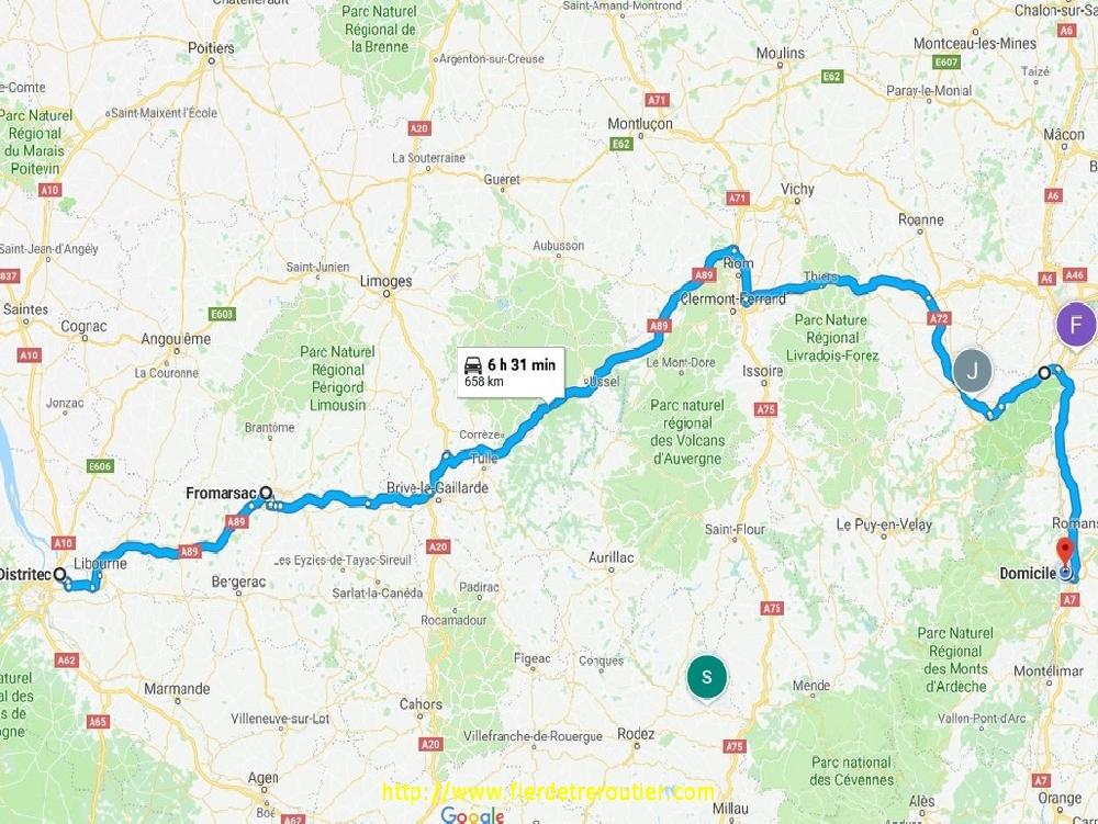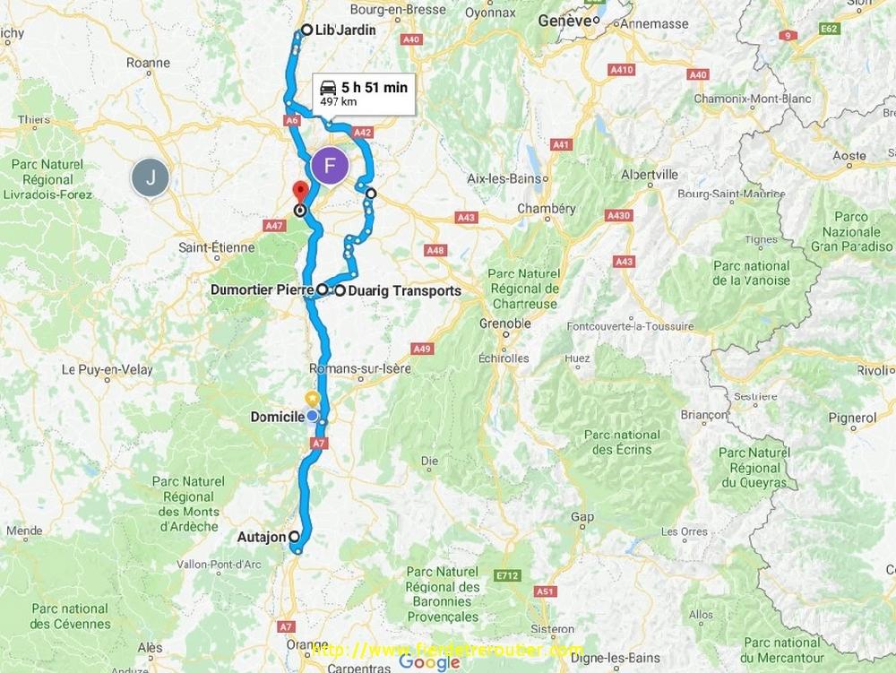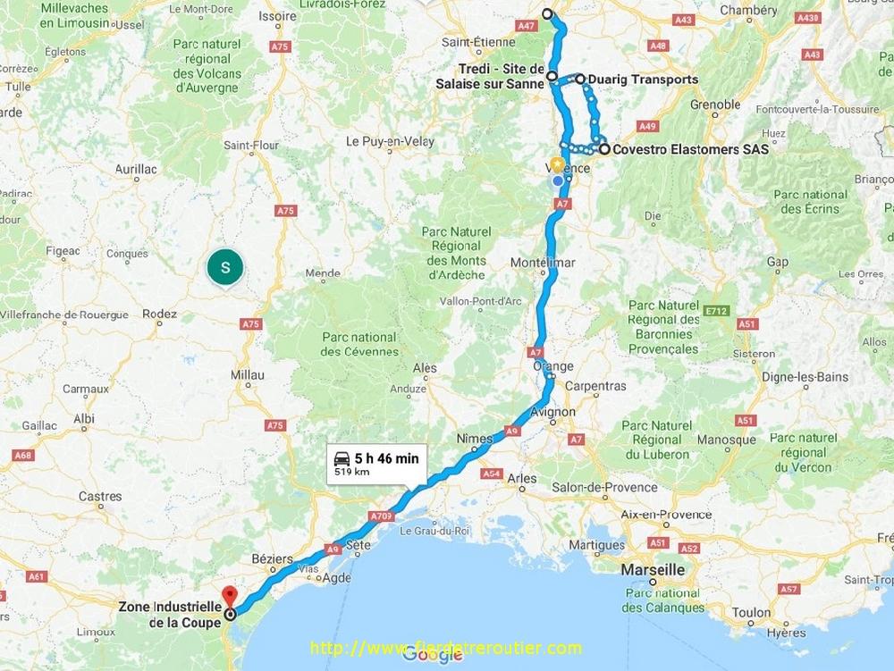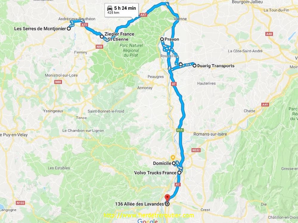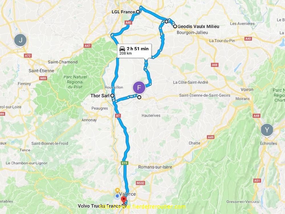 Départ de la maison sous un beau soleil ce matin à 7h30. Mais à en croire senor météo à la radio, ça va pas durer, quoi qu'il en soit ce qui est pris est pris. J'ai bien failli oublier de changer l'heure du tachy, à deux doigts de faire une boulette. J'ai RDV ce matin au garage Grangeneuve à Valence, à la première heure pour faire reparer mon feu de semi qui ne marche plus depuis 3 semaines, et mine de rien c'est chiant de pas voir le bout de sa remorque. Tout ce que je sais c'est qu'il y a plus de jus au bout, mais je voulais pas tout demonter vu le bordel de fils qu'il y a. La plupart des branchements ont été refait après mon accident, c'est des fois un peu olé olé la bas derrière. Finalement, il s'avère que c'est une broche qui est décédée. Café compris avec mon pote Richard je repars 3/4h plus tard direction Montélimar.
