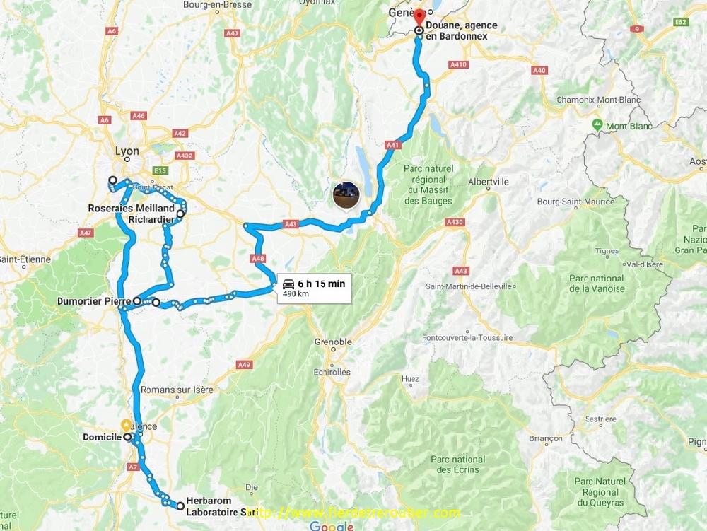 Du fait que le printemps arrive doucement, il y a un peu des fleurs à faire, mais d'après tout le monde c'est bien bien bien trop calme cette saison 2018. Je prends une paire de rolls vides et un rolls de retour à Anjou, puis direction Diemoz au dessus de Vienne. D'après ce que j'ai compris, je suis ARCHI en retard. Donc, je me tape des tracto pelle à la pelle, des grumeaux et des zones de travaux après Cours et Buis. L'avantage d'être en retard c'est que les rolls sont prêts, je prends des rosiers magnifiques à Diemoz, et je file ramasser le reste à Saint Genis, la aussi c'est prêt, 30 rolls à charger et la semi est quasi pleine.