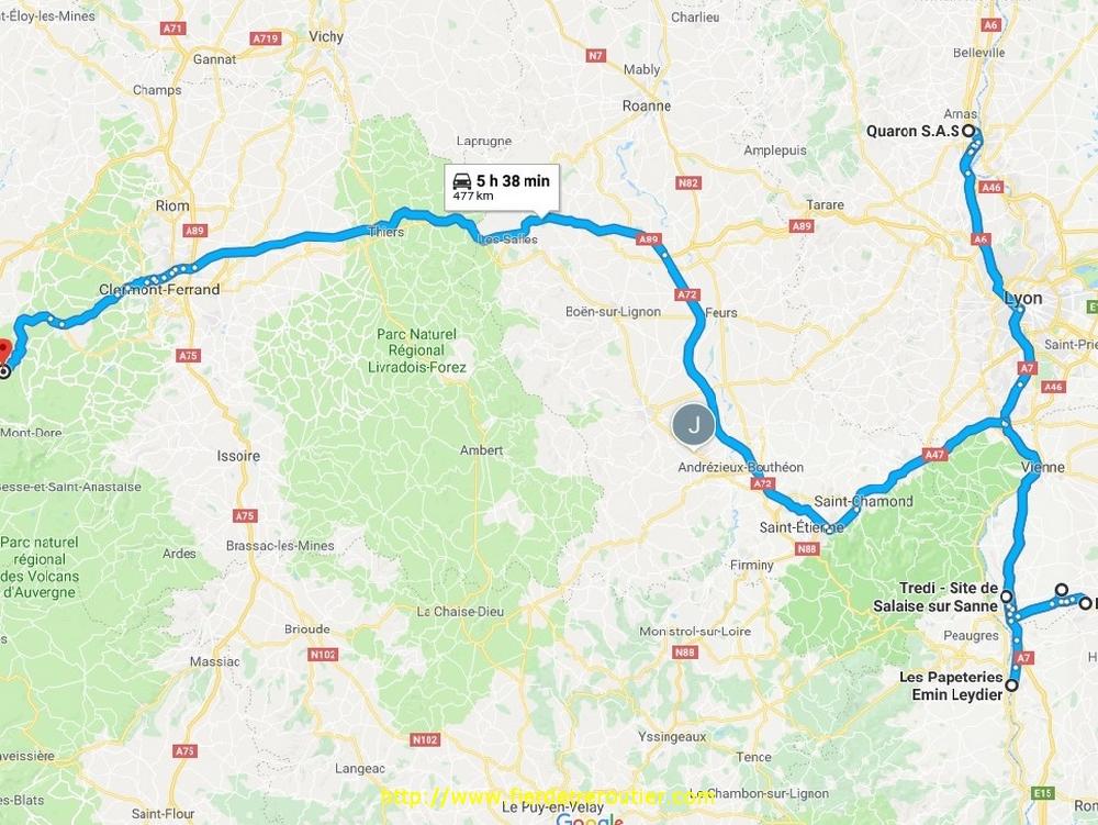Ce matin, c'est grande motivation à Montélimar, tout est déjà prêt, il y a juste une commande de 2 palettes pour Barcelone qui est annulée ce qui provoque une colère monumentale du chef des expeditions, on est que lundi. Je remonte juste avec la moitié de la semi direction le dépôt ou j'arrive juste après midi, non seulement le soleil a disparu mais en plus il bruimasse. Je vide la semi rapidos, et je file à Anjou, cette apreme je mets ma casquette de bloemen vervorer. Donc je garde ma pauvre pile de rolls, on rajoute des baches, des retours et j'ai plus qu'à monter à Thoissey, le periph de Lyon passe crème, il est 15h quand je me radine, Patrick est encore à quai je ne suis donc pas en retard.