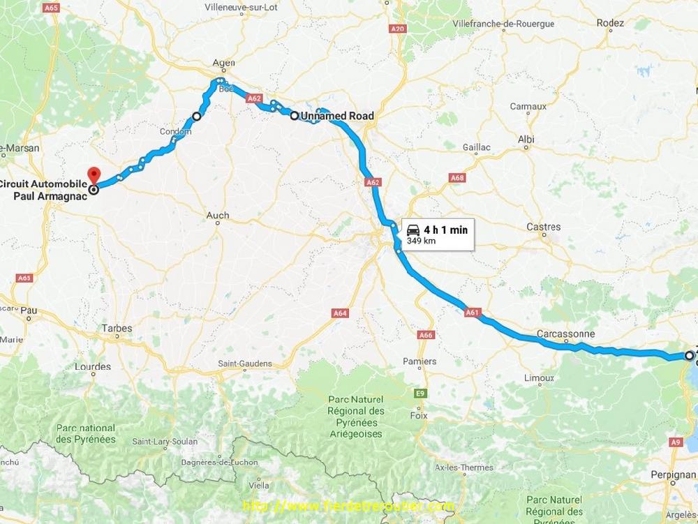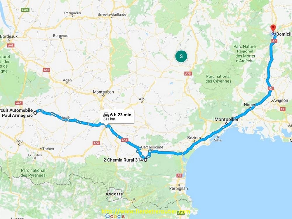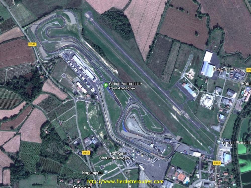 Ensuite, j'ai plus qu'à goûter au plaisir de rouler sur les routes des mes départements préférés, à savoir, le 82, le 32, les départements de bouseux, c'est mon truc ! Je pose 2 palettes d'arbres à Le Pin, plus du vin et du Boursin. A midi ça bosse encore, et il faut pas longtemps pour vider. Je casse la croute juste avant Agen, tout en préparant ma feuille de circuit au calme. De là, une fois sorti à Agen, j'oublie tout, ma conso s'envole, la route n'est pas eco responsable et dans un état presque aussi bon que les reventements autour de la capitale. Heureusement, c'est joli, la traversée de Condom c'est toujours un moment magnifique, même si aujourd'hui il fait presque moche. A 15h je me radine au circuit de Nogaro, mon emplacement est pas encore dégagé, faut attendre un peu, mais à 16h j'attaque à preparer mon merdier à distribuer, pendant qu'Arthur glande en se faisant payer des patisseries par Wim à Spa...