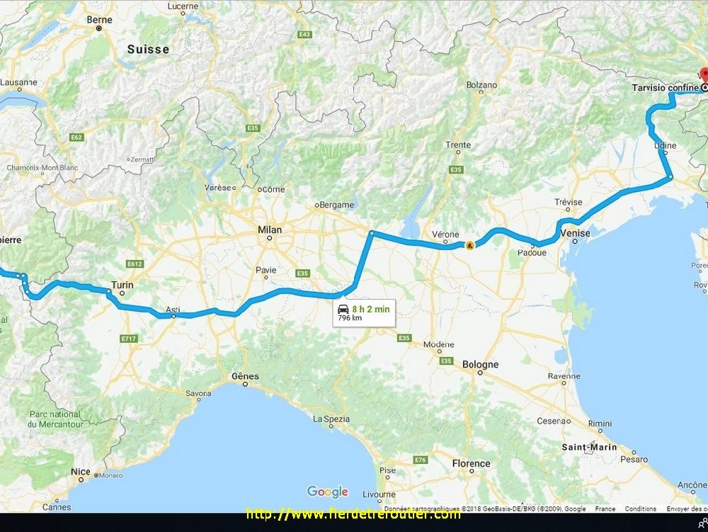 Il va falloir la jouer fine, je surveille toujours Google Trafic, un gros point noir se profile à l'horizon dans les travaux après Latisana, la nationale est blindée aussi, j'en déduis que l'A4 est coupée. Du coup je prends pas de risques, c'est bien marquée que l'A4 est fermée, je monte par Pordenone via les routes du Friuli, je prends 45 minutes de break juste après Portoguraro, au calme. J'essaie surtout de pas me gourrer. Un oeil sur ma carte MICHELIN N°429 de 1997, un sur mon GPS et un sur Google trafic et un sur la route, comme vous l'avez remarqué j'ai 4 yeux, c'est pas joli mais c'est pratique. Il y a pas mal de camions sur l'axe, je pense pas être le seul à avoir eu l'idée de couper par là. Je récupère l'A28 à Osopo. En fait je connaissais un peu le coin, puisque j'ai eu livré de l'additif de peinture à Majano, ça m'est revenu en y passant. Je me radine avec 9h45 à la frontière autrichienne, je prends aucun risque et je me gare le long de l'autoroute, je sais d'avance que je vais mal dormir, mais j'ai bien le choix. 20h fin des opérations, je règle le reveil pour 4h. Pfff A priori, il ne me reste que 680km, je devrais arriver dans les temps en moins de 10h demain, inch allah comme on dit en Hongrie.