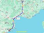 Un peu avant 19:00 faut vraiment y aller, plus de temps à molir, c'est encore un peu la zoberie pour sortir, mais une fois sur l AP7 je peux envoyer de la bûchette. Chargé bien lourd mais avec des palettes basses c'est du velours à rouler comme ça. Avec la fermeture de la frontière basque il y a un nombre incalculable de camions, même avec le début de nuit ça ne se calme pas, je coupe mes 45 au bout de la voie d'accélération de Béziers Montblanc.