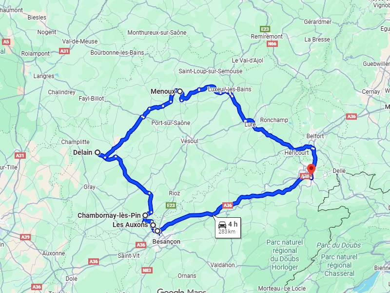 J'ai piscines demain à 9h30, je n'ai plus qu'à me rentrer. A 15h pétantes je suis à Bourogne, halte aux cadences infernales.