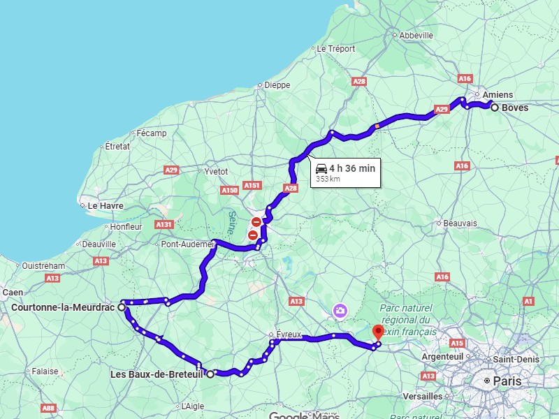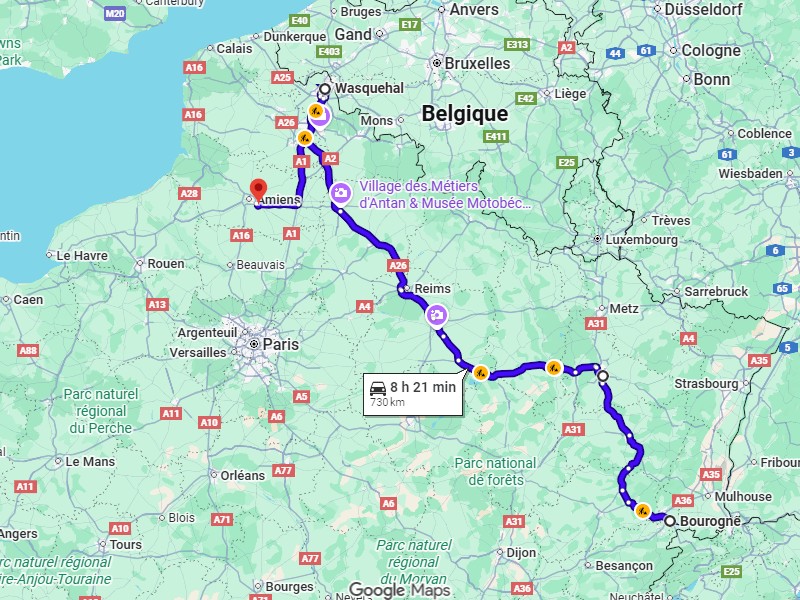 A 19h je suis à Boves à l'entrée d'Amiens, 9h40 de volant, c'est bien pour un lundi.