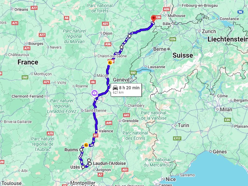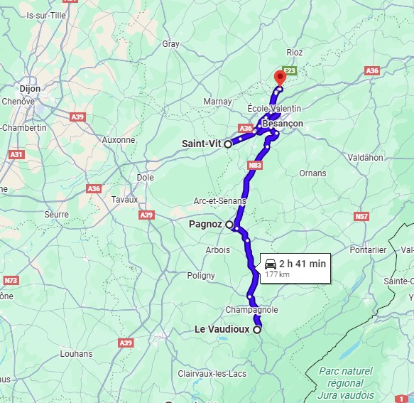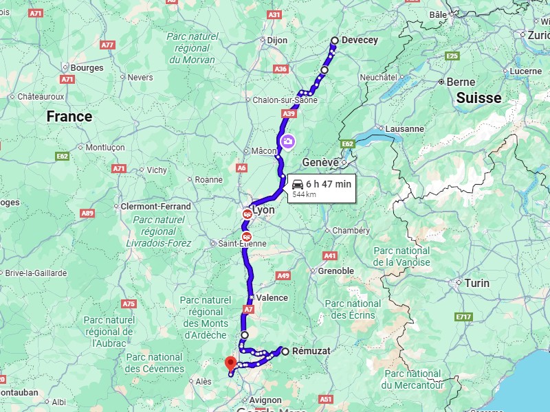 J'ai 4h25 de volant au péage d'Avallon, ça tombe bien c'est là que je sors. Avallon Sombernon Dijon Dôle, tout par la nationale. Je n'aurai payé que de Laval au Mans et de Courtenay à Avallon.