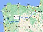 J'appelle le commercial, il arrive dans la minute, belle coordination. Les Espagnols et la ponctualité ça fait deux mais lui est rigoureux, ça me va bien. Hier je lui avais dit que le plus tôt serait le mieux, je n'habite pas en Galice. En deux voyages la piscine est déposée. Je préviens Laurence, elle me dit de rouler. Pour rigoler je tape Audincourt sur le GPS, il me sort 1775 km et 24h de conduite. Bon bé je vais aller en faire un peu alors. La circulation s'est calmée j'arrive à passer l'épingle sans aller tourner plus loin. La route longe le Portugal sur un bon bout, pour rigoler je passe un pont, ça fait 1 km de détour tout au plus et je prends une photo. Demi-tour au premier rond-point, cette semaine je serai allé au Portugal.
