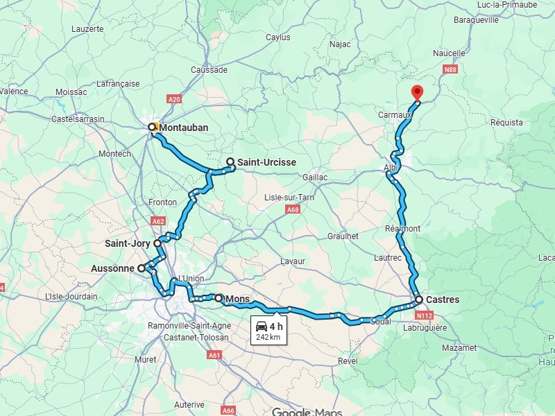 Bien sûr Laurence m'a envoyé un retour, on commence à Carmaux demain matin. Je vais donc souper à La Croix de Mille où j'étais la semaine dernière avec ma fifille. Grosse journée, la pluie, j'en ai bien assez ce soir.