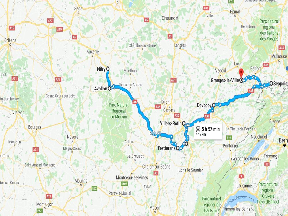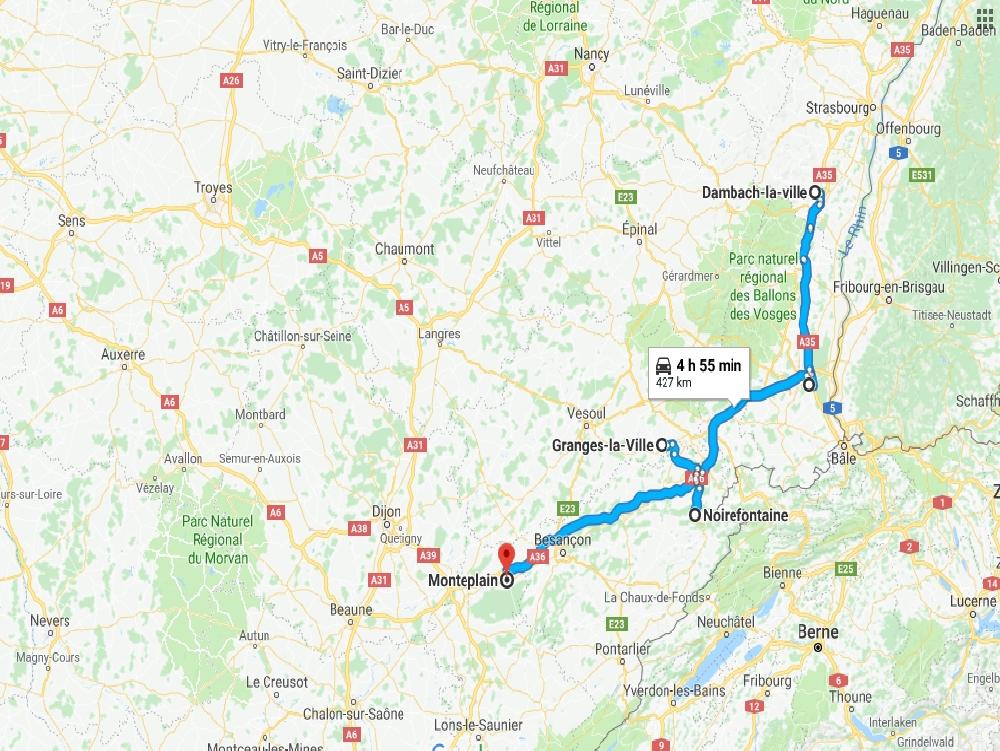 Ne me reste plus qu'à descendre à Dôle, j'esquive le péage de Belfort-Fontaine en passant par la 83, allez hop 10 boules économisées. Je me pose au Moulin des Malades à 8h moins le quart, finalement j'ai une 11h. Du coup avec mes 3h de tout à l'heure mes deux 11h de la semaine sont faites ?
