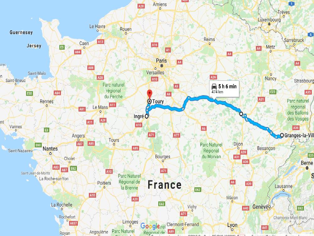 Pause de midi entre Troyes et Sens, le compteur se remet à zéro. A 16h je suis à Ingré, banlieue d'Orléans. Comme partout c'est plein d'interdictions aux PL, allez vous faire teindre.
