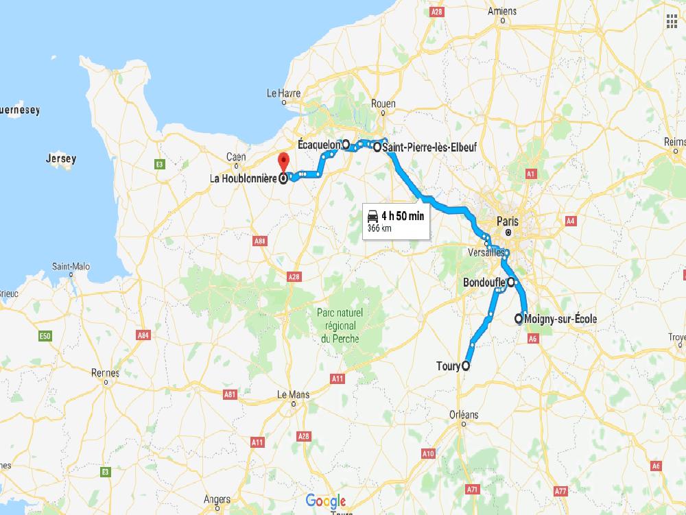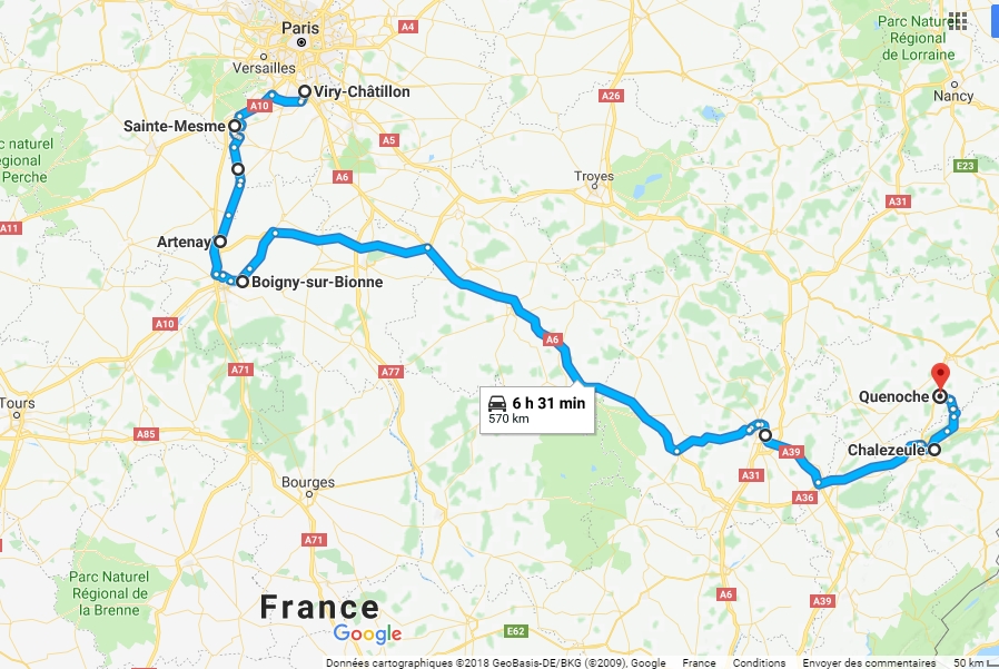 Je retourne en région parisienne, à côté d'où j'étais hier. C'est bien nul ces impératifs. Je me suis pris assez large pour rentrer par la nationale. Pause gas-oil à l'AS 24 du centre routier de Caen, ensuite j'enquille Lisieux Évreux, retour sur l'autoroute à Mantes. Les 4h30 risquent de sonner sur le contournement de Paris, je coupe à Morainvilliers histoire d'être tranquille. C'était le bon choix d'autant que l'A6 est bouchée vers Évry. On annonce 45 min de bordel, je prends par la N7, ça roule mais je ne suis pas certain d'avoir gagné du temps.