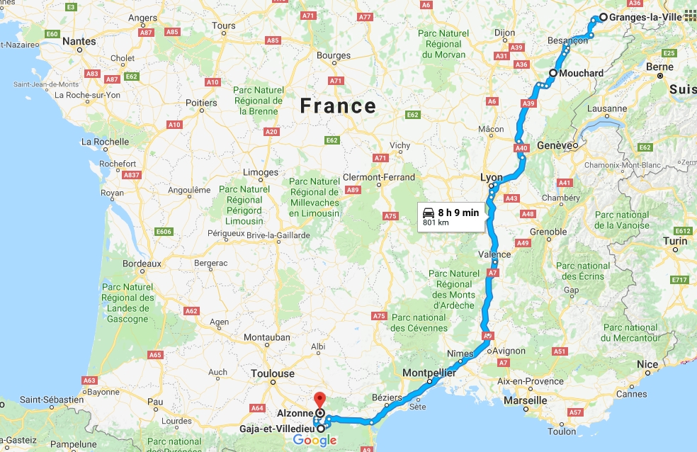 Je descends tranquillou, j'ai du pain de la maison, un arrêt de moins. Je mange entre Besac et Dôle. Sevket m'appelle pour prendre de mes nouvelles puisqu'au départ c'était sa tournée. Pour l'instant tout baigne.