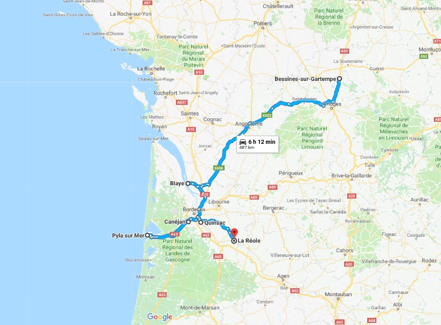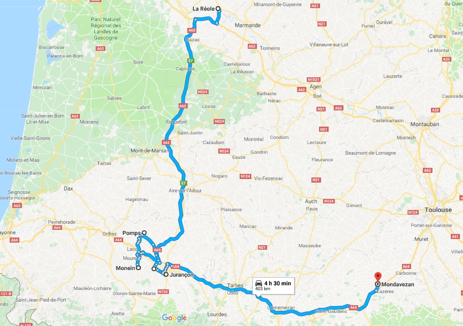 Je comptais descendre direction Pau mais j'en ai trop marre, m'en vais couper à La Réole.