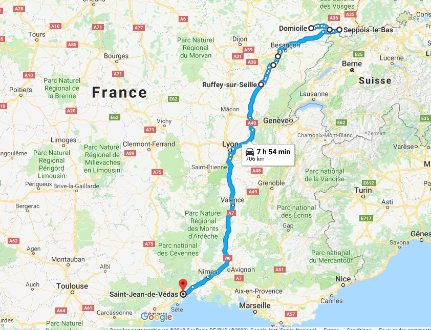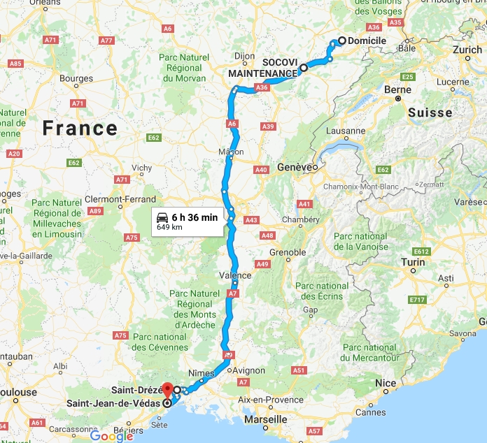 Je traverse Montpellier, c'est pas trop la bonne heure mais avec le doublement de l'autoroute faut reconnaître que ça s'est bien amélioré. Je me fais une deuxième réno vite fait sul' gaz.