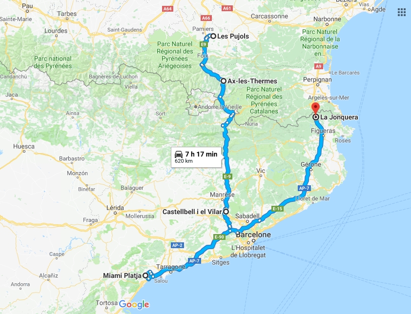 Petit arrêt à La Jonquera pour refaire les stocks, j'étais à marée basse. Et je m'en vais finir la journée à Riudarenes. Les restos sont rares depuis l’interdiction de la N2. Il y a pas mal de français sur le parking, vais voir ça.