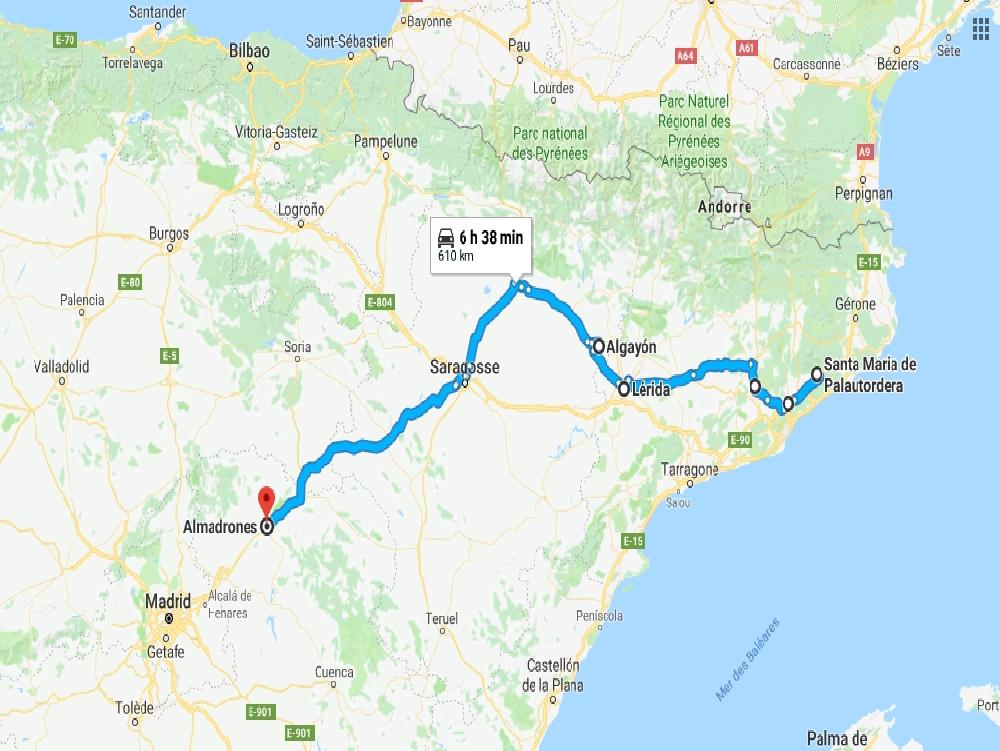 Je ne redescends pas à Barça, je coupe au travers pour rejoindre Lleida. Cette connerie de palette m'a mis bien en retard, j'avais mis 11-13, j'arrive pourtant à 13 heures passées.Sur place, il y a Enrique, le chef de Waterair, c'est la première fois que je le voyais. Livraison facile, lotissement facile, ça change.