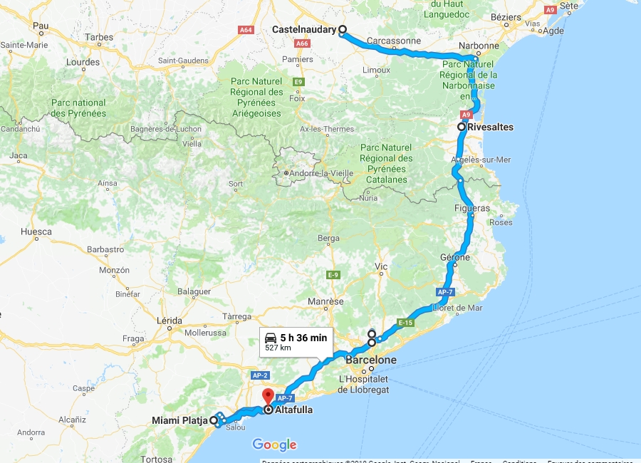 Le reste de la descente alterne entre vent, soleil, averses pour faire chier. Je me pose à la Sol à La Jonquera avec 9h38 de volant, sans stress. Mission accomplie. Vais mettre une petite laine pour aller souper, c'est pas encore l'été ici.