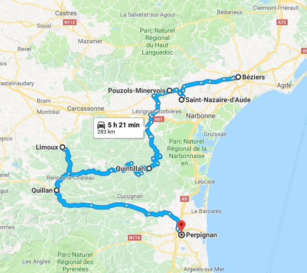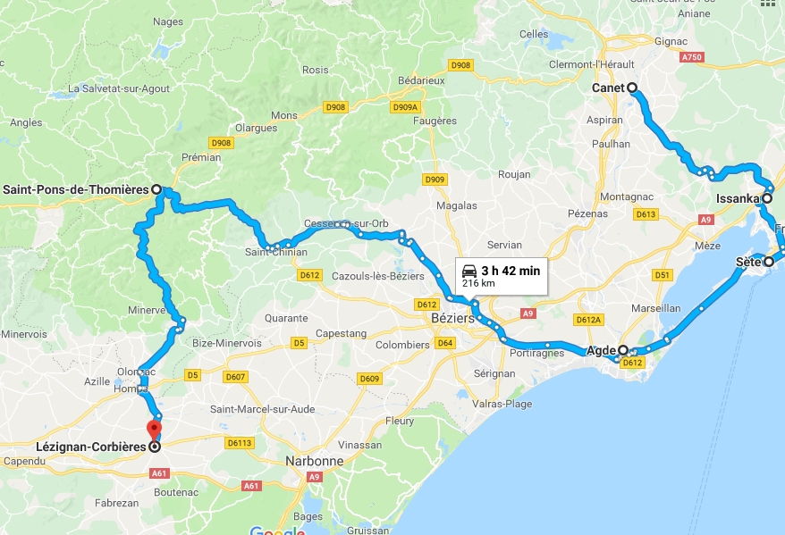 Je trouve un parking correct pour faire demi-tour quelques km plus haut, ouf. Il ne reste plus qu'à se replacer pour demain. Fin de mission à Lézignan Corbières, j'avoue que j'en ai marre.