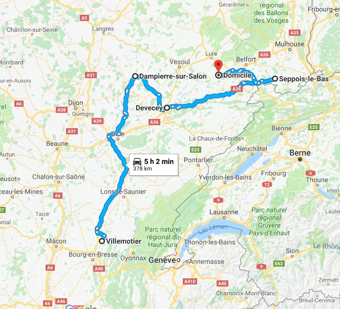 Je rêvasse sur l'A39 et je loupe la sortie pour aller à Montchauvrot, pour la douche c'est compromis. Je rattrape Dôle, je fais ma 45 sur un mauvais parking.