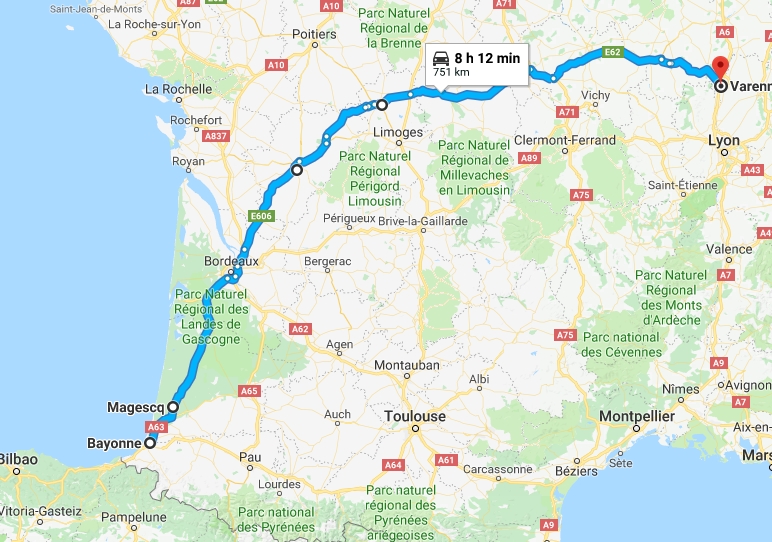 Je m'étais dit que sur les coups de 11h Bordeaux allait passer tranquille. Mon cul Paul. Deux bagnoles se sont frottées au pied de la côte de Floirac. Gros bordel. La rocade de Bordeaux ne me manquait pas depuis quelques semaines ou mois que je n'y suis pas passé. La RCEA non plus d'ailleurs. Je me fais une ou deux coupures par ci par là. Je pensais couper au Tom Bar pour couronner cette belle semaine mais il me reste une heure à rouler si je veux. M'en vais souper à Varennes les Mâcon, on y mange moins bien mais comme disait Johnny si on était arrivés une heure plus tôt ça fait une heure qu'on serait là, moi en roulant une heure de plus je suis une heure plus loin. Merci à Johnny sinon je n'y aurais jamais pensé.