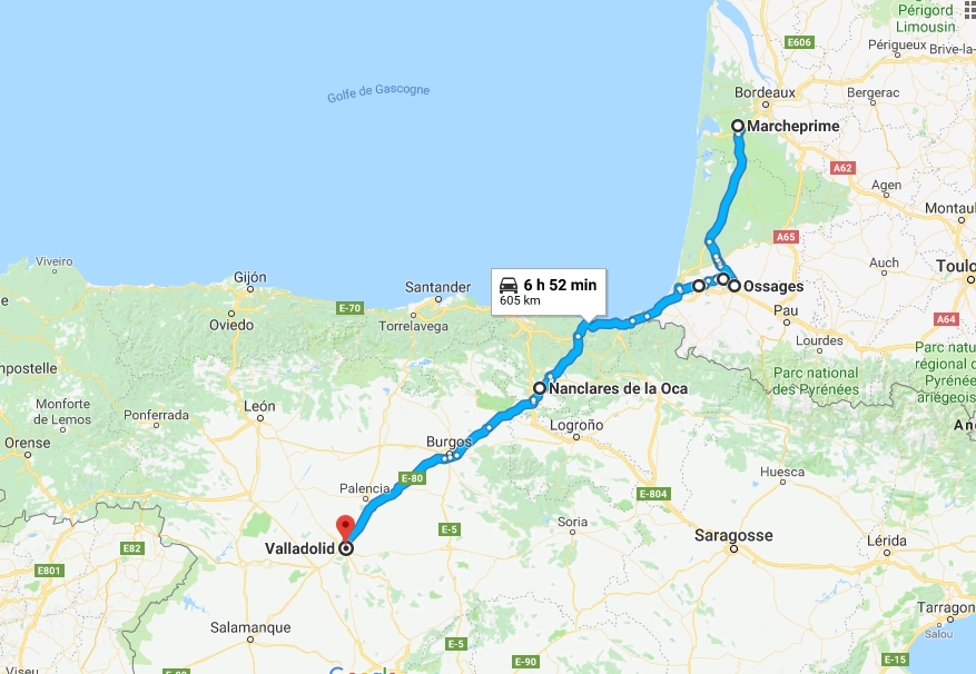 Il ne me reste plus qu'à rouler, je garde l'autoroute jusqu'à Burgos, tant pis pour le magnifique défilé de Pancorbo, il est déjà en photo cent fois sur FDR. Je termine mes heures à l'entrée de Valladolid. C'est l'avantage par ici, il y a un resto à chaque sortie. Je me gare avec 8h58 de volant, mieux que sur le plan.