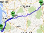 Je repars tout guilleret. Je ne compte pas faire du tourisme bien que la région soit accueillante, il y a Bordeaux à passer, ce qui parfois est une épreuve difficile ! Bon , à part un "bouchonnet" au niveau de l'A62, rien à dire. Je sors pour prendre l'A89 et tire jusqu'à l'aire du pays de Brive en 4h31. Une 45 que je met à profil pour faire un petit gueuleton et je repars en calculant où je vais pouvoir m'échouer avec les 2h30 de guidon qui me reste à faire.
