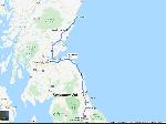 Il y a bien quelques rond point au début, mais la moyenne est vite correcte. Et surtout les paysages ne sont pas mal non plus, différents des montagnes du M74 et de la Cumbria, puisqu’on longe la côte par endroit, c’est vraiment joli.
