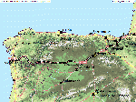 Sur l’A8, y a pas foule, comme dans le tourisme, ici, peu d’étrangers, beaucoup de camions qui abordent fièrement la croix d’Asturies, symbole de la province où a démarré en 722 la Reconquista pendant l’invasion Arabes.