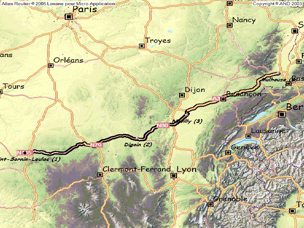 De là, je n’ai plus qu’à me rentrer tranquille, sans oublier de s’arrêter casser la croûte sur la N73 vers Lavans les Dôle. Je tombe sur un gros convoi en redémarrant, mais rien ne va mal, ils laissent passer au rond point de St Vit.