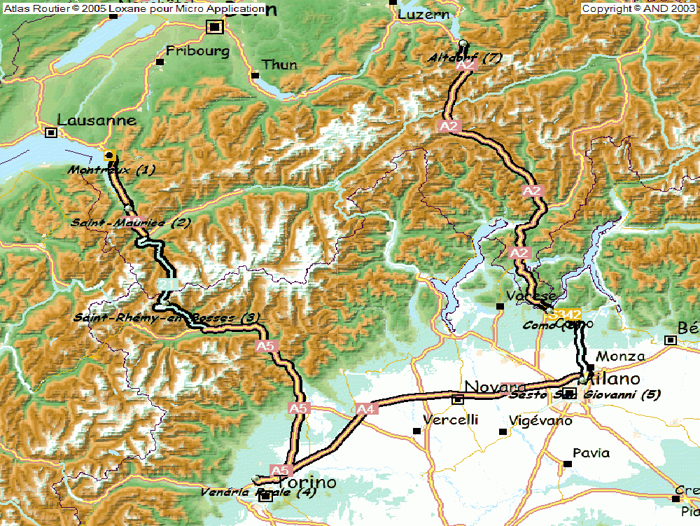 15h40, c’est reparti pour juste croiser la tangenziale nord. Je file sur Como via la sortie Monza et une SS qui va bien, on passe à côté de Seveso entre autre. Il faut 1h10 pour arriver dans la cour de la douane à Como (Dock) pour passer chez Migliavada. 40’ pour faire le T2. Là encore, on pourrait sans passer, mais sur cet axe, bof, que ce soit à Chiasso ou Bâle, ils aiment encore bien les contrôles poussés genre scanner. Les 30€ de cette formalité réglés et un café offert, go pour la suite à Ponte Chiasso en frontière, 15’ de route après. Il y a toujours du peuple qui remonte, dont quelques habituels français du 68,67,70,88...