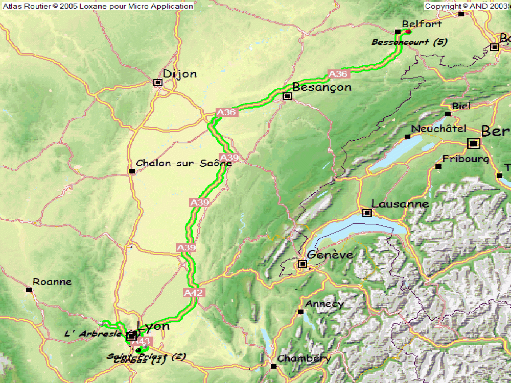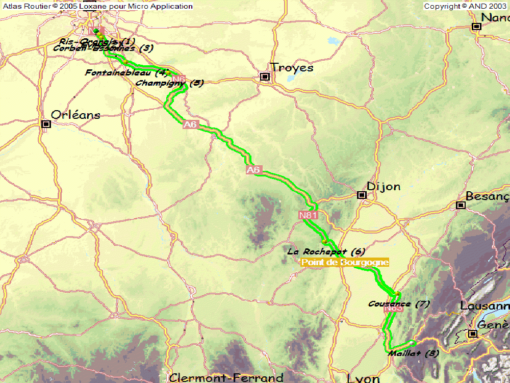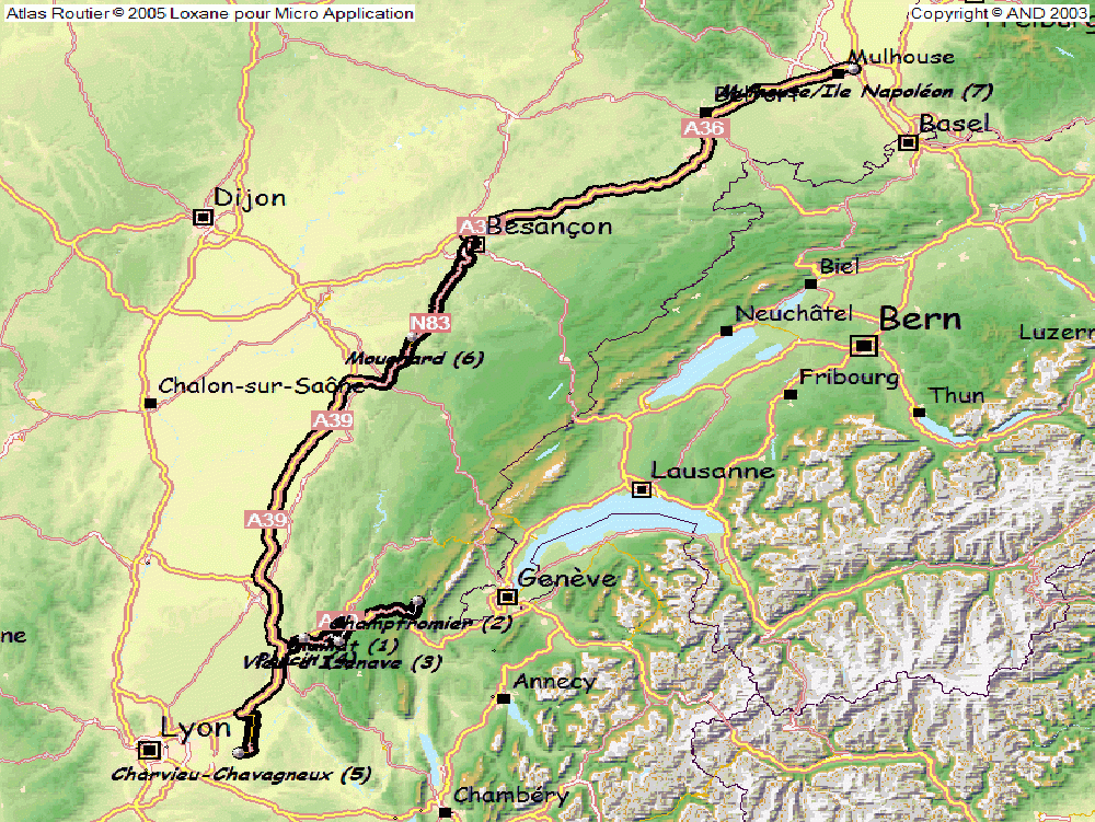 A40 à Montréal la cluse, puis A6 jusque Chalon nord. N6 comme beaucoup de monde.