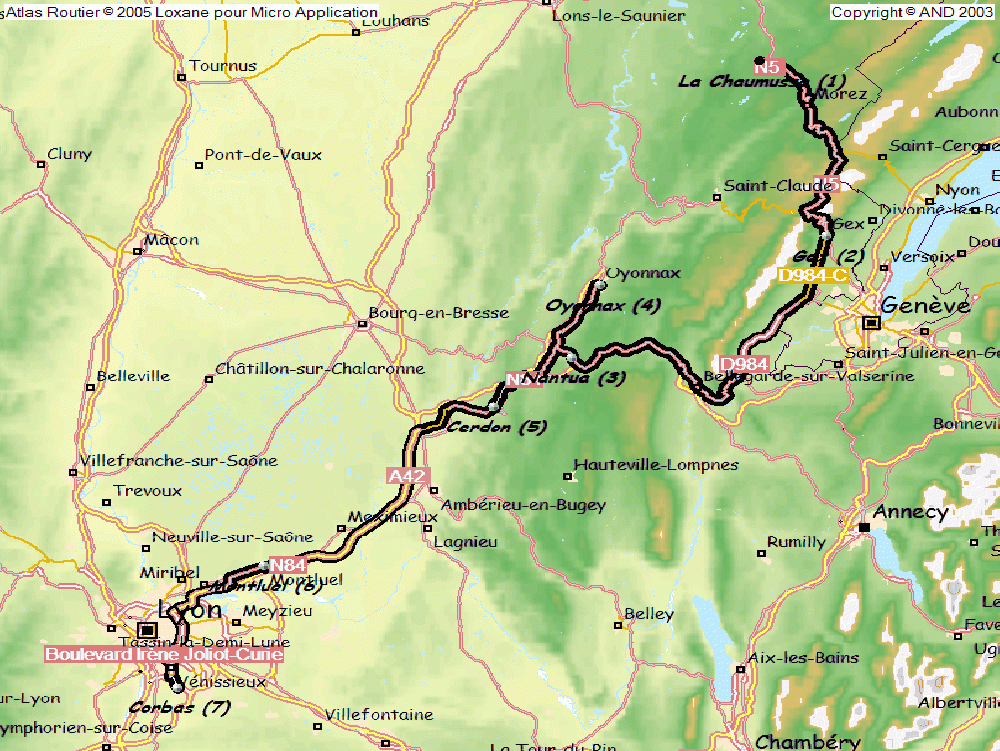 Je contourne Bourg par l’A40 et sort à Tossiat pour rejoindre la 84.
