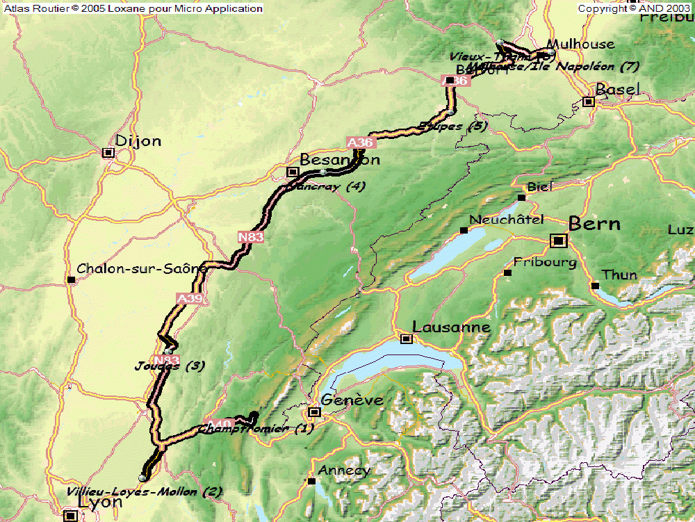 N83 jusque Lyon les Echets, malgré le contournement chiant de Bourg. Mais je pense pas qu’on perdre du temps.