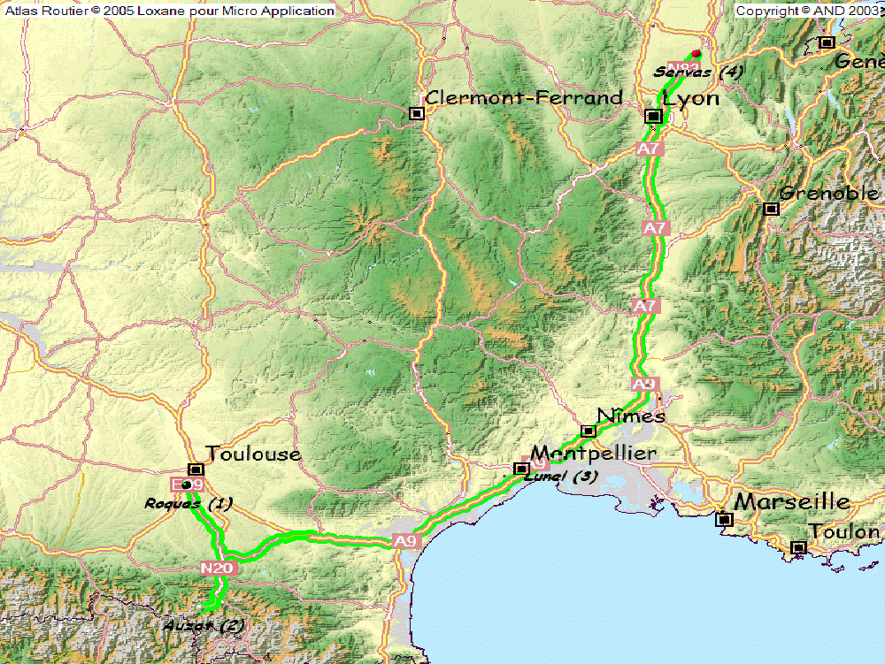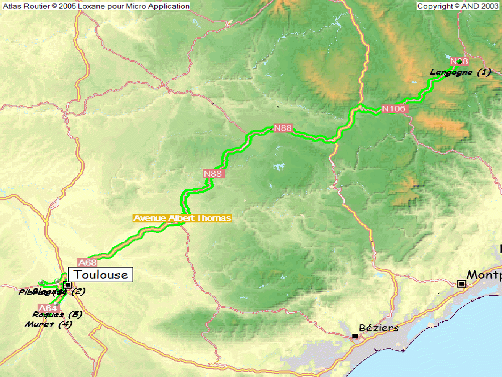 Direction le sud, Pamiers pas la RD, puis la N20, Foix tout ça. Ça doit ma 1ere dans le 09.