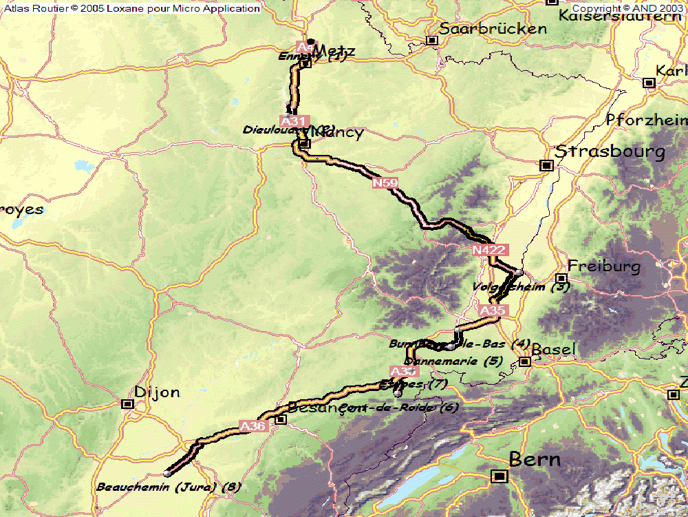 Si la 83 est une belle route en général, ce dernier tronçon jusque Montbéliard n’avance à rien. Un nombre pas possible de ronds points. Mais bon, je ne suis pas pressé.