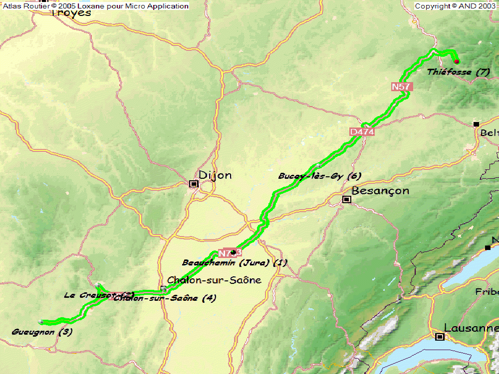 C’est cool, ça va pas mal, et on arrive après Larnod. Si je compare au passé consultable dans mes calepins, je n’ai pas perdu 5’ que d’avoir gardé l’A36 jusque Besac centre. Bon je suis léger, j’ai pas trop amusé le terrain. Mais à ma grand surprise, si y a des fruitières le longs de cette route, je n’ai aperçu aucune boulangerie.