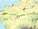 Je descends tout droit par la 138 via Bernay, Brionne, Gacé, les ronds points ça n’arrête pas, je ne connais pratiquement pas cette route. Avant Sées, dans la forêt je roule sur une aile quasiment complète de semi, un gars a dû éclater, je stoppe un peu plus loin pour faire un tour de l’ensemble à la torche, pas de casse apparemment, même si on voit que le carter a été frotté un peu, encore eu chaud. Plus loin je croise un camion en warning qui roule au pas, il doit rechercher ses pièces manquantes.