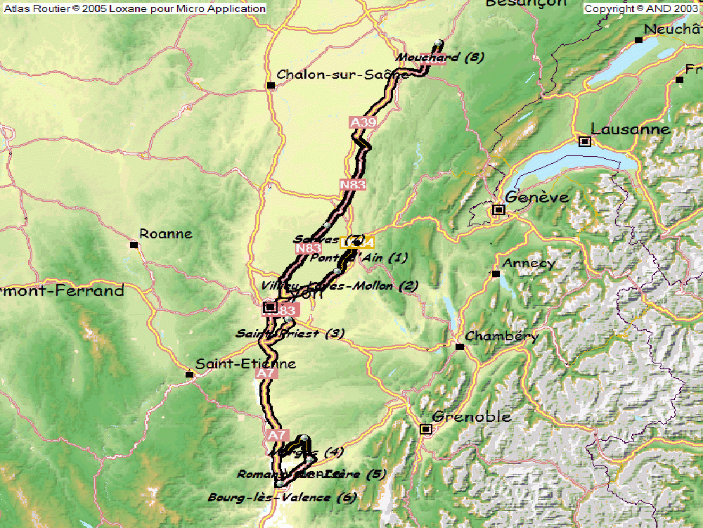 Ça trace mais je m’aperçois que la sortie Chanas est bien après la base, je m’en souvenais plus et j’ai pas fait gaffe en descendant ce matin. J’aurais été plus vite par la N7.