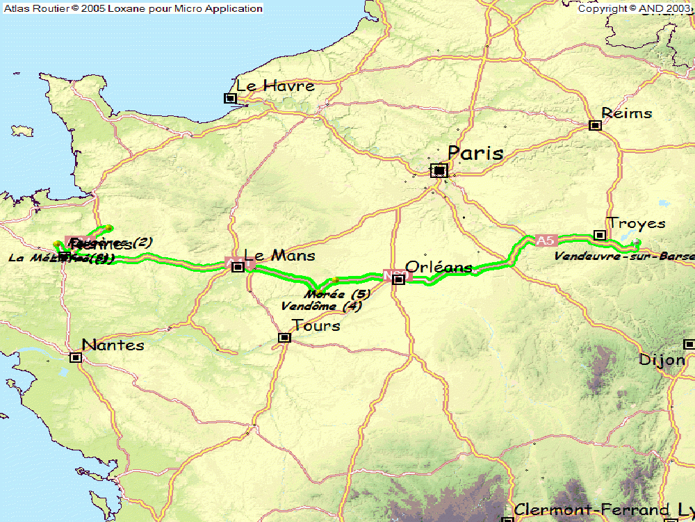 Je garde un peu l’autoroute pour contourner les pénible ronds points de la pénible rocade de Laval, j’ai 19t quand même. Natio à Vaiges, et un peu de gazole à la Access juste après l’accès de l’autoroute au Mans.