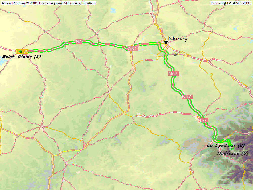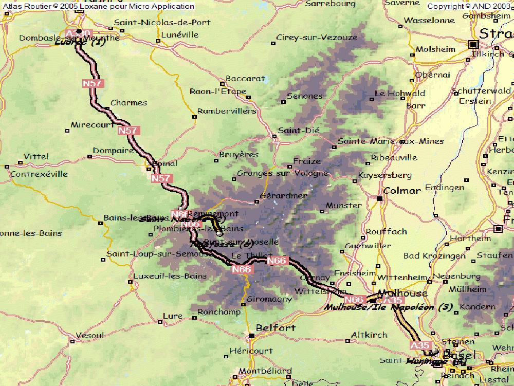 Alors Thann c’est tout vert (dans mon sens) et le col d’Oderen est également marqué vert aussi, il n’a pas encore neigé visiblement.