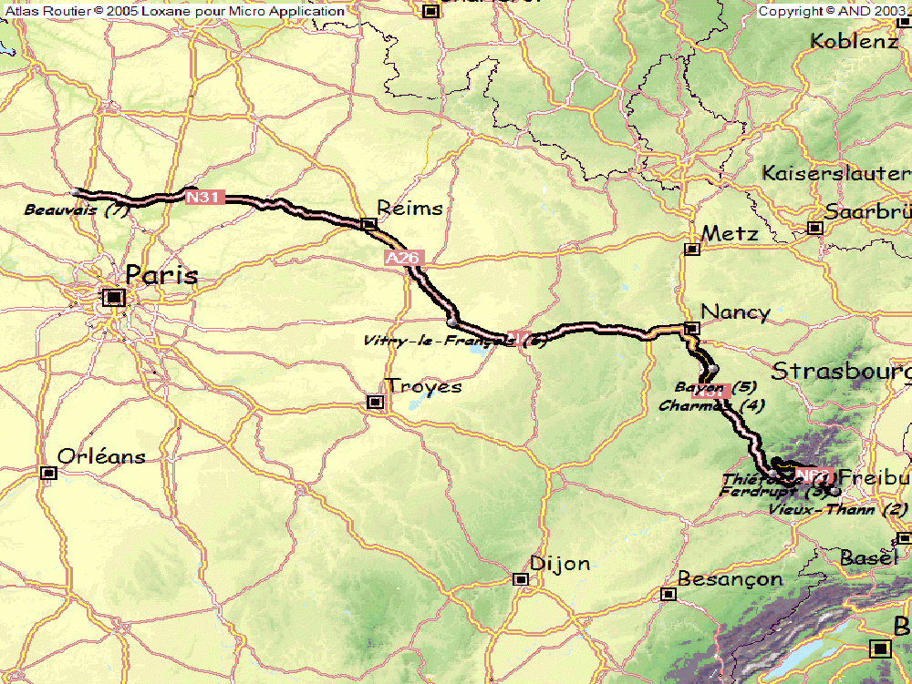 La sorte de Reims est un peu encombrée en enquillant cette B31, mais peu de temps perdu à part une moisse bat dans le bois avant Compiègne qui finit par se garer pour laisser un peu passer.