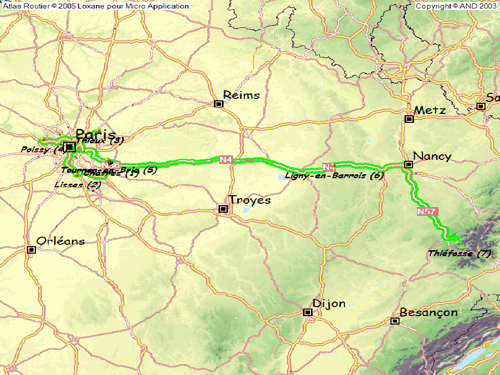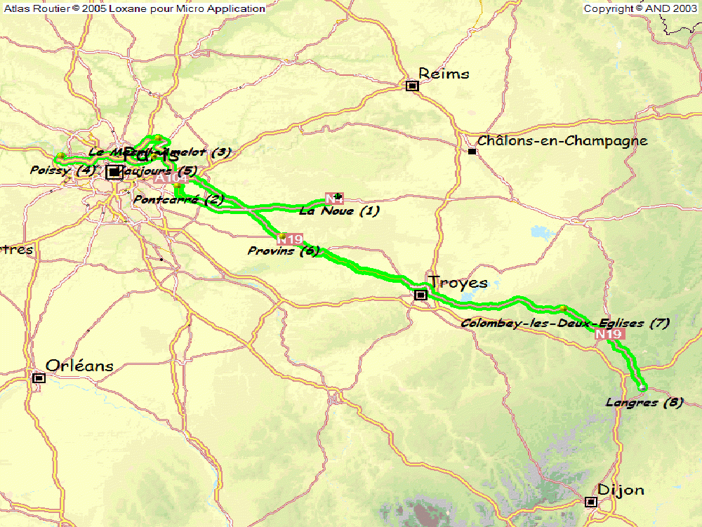 Je repars 1h plus tard, direction le 25, dans une circulation verte. Pareil que ce matin, via Pontcarré, la Camping Car Strasse quoi, puis la N4 et la D231 direction Provins.