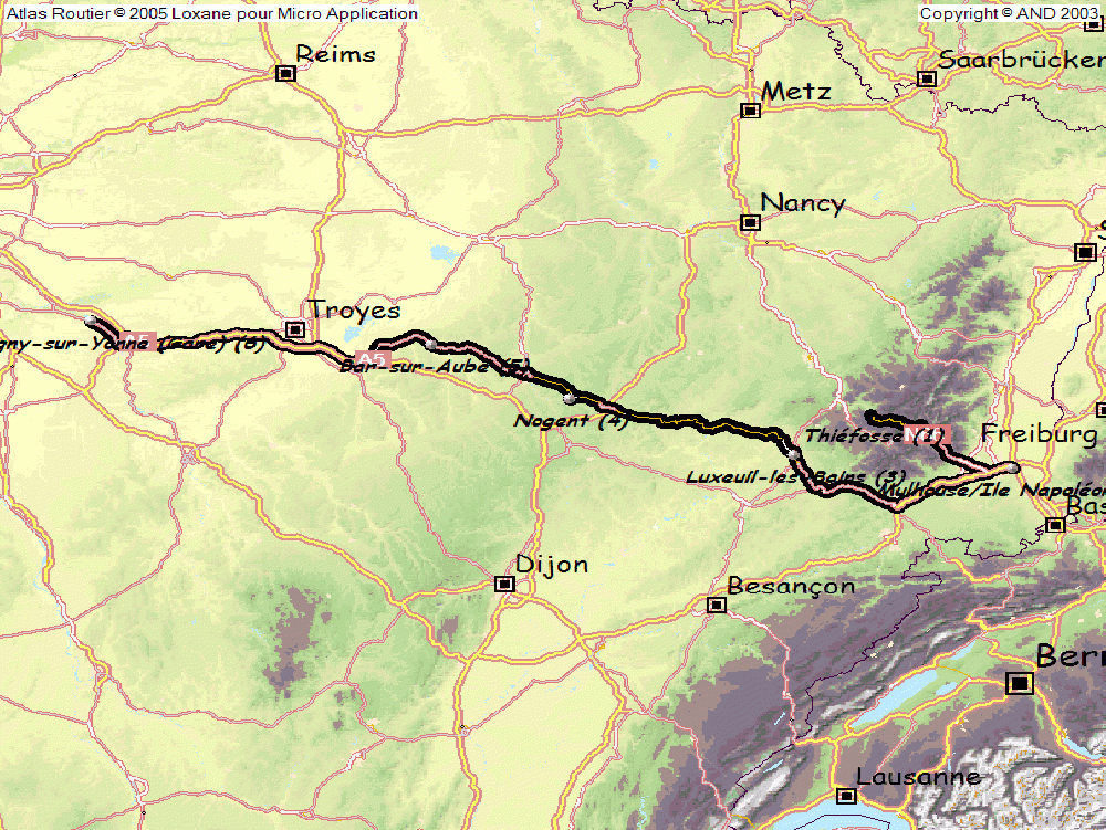 J’aime bien cette route de St Loup Bourbonne, ça me fait penser quand on va aux fruits dans la plaine des Vosges dans les vergers de mes grands parents. On transite la haute Saône en fait. ça va, les 70 ne sont pas chiants comme les suisses, ils ne nous taxent pas.