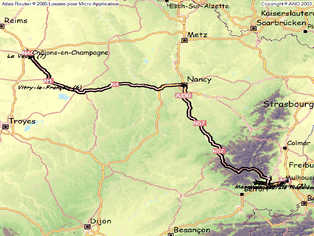 La suite c’est la méga routine la N44, N4, ma nouvelle A31 quoi ! L’avantage en venant du Nord, on évite la traversée de Vitry. Sinon, le contournement de St Dizier se passe à même pas 70 comme à chaque fois.