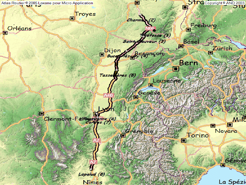 Puis RN83 tout du long jusque Lyon, y a des routes comme ça qui ne m’ennuie pas.
