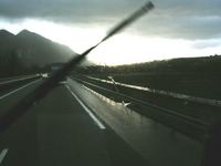 J'ai bien récupéré Et je suis en pleine forme pour le départ, plus tard qu'hier quand même, il est 4h00. La circulation est calme, du moins, dans mon sens parce que, de l'autre côté, c'est déjà chargé, les gars essayent de passer Venise avant les heures de pointe. C'est incroyable comme le trafic à explosé en quelques années. Le passage de la frontière se passe sans problème, même pas le contrôle du passeport, la Slovénie est dans l'espace Schengen maintenant. Ca fait plus d'un an que je ne suis pas venu alors, je profite un maximum de ce voyage. Le client est un peu après Ljubljana et je rame un peu pour le trouver. J'ai demandé mon chemin à une station service, l'avantage de ce pays, c'est que tout le monde parle l'anglais, même si ce n'est que le niveau scolaire, ça suffit pour les conversations de base. Avec le temps de l'analyse, je suis vide un peu avant midi et je retourne sur l'Italie. J'ai moins de chance qu'hier pour la traversée de Venise, 20 kms en 1h45, cette ville est devenue saturée en permanence. Lavage sur le port et, bien sur, plus d'amplitude. Moi qui pensais pouvoir manger après Vicenza, je mange pas loin de la Montedison sur le port. Cette nuit, la vague de pluie, qui était sur la France hier, est venu me rejoindre.