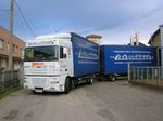 Livraison à côté du resto, je profite du déchargement pour passer un coup de bombe dans les glissières des poteaux et des bâches. Retour au resto pour attendre les ordres. Sur le parking, il y a un joli VOLVO avec une fond mouvant ? Serait ce thom@s? C'est un des ses collègue, nous prenons un café. Le boulot arrive un peu plus tard, je vais charger à Thiers. Je passe par Digoin et Vichy, c'est plus court, plus rapide et moins cher que de redescendre à Lyon. J'arrive vers midi, petit miam en attendant l'ouverture. Le cariste n'est pas du genre à perdre du temps, et j'ai tout juste le temps de tirer la bâche au fur et à mesure qu'il pose les palettes, comme ça, je pars suffisamment tôt pour passer Saint Etienne avant la sortie des bureaux. Je suis au dépôt en fin d'après midi, un vendredi à la maison, c'est une habitude de fonctionnaire.