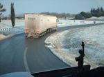 6h le réveil sonne, je met la radio, je tire les rideaux pour voir ce que ça donne, ben rien de bien terrible, à la radio ils annonceent que l'A61 est fermé, le bordel quoi. Domi ce lève a son tour, on va déjeuné pas très convaincu par cette nouvelle journée, mais une fois débarbouillet et un bon petit déj, on a un peu plus de courage, nous décidons donc de partir, ça roule assez bien c'est de la neige fondu, on y va tranquille pas de problème, arrivé sur la N113 on arrive à capter 107.7 tout est bloqué partout, arrivé à Carcassonne nos craintes sont confirmées, il y a des camions de partout stationné sur les parking de super marché, les gendarmes sont au rond point et nous font garer avec les autres, il est 8h30 il y a un BMB a côté de nous, c'est Jean Marie un collègue à Caroto, super sympa le gars on a bien rigolé, le temps passe plus vite.10h enfin le feu vert est donné, mais alors je vous dit pas le bordel, bref 11h j'arrive enfin chez mon client à Narbonne,Domi lui continu sur Montpellier, il me faut décrocher(et une fois) il y a les trois quart du porteur à vider, il nous faut une grosse demi heure. Je raccroche ma remorque et je fonce sur Perpignan en chemin j'appelle mes deux clients, voir ci je peux vider vers 13h, pas de problème pour celui de St Cyprien, nickel, pas de problème sur la route hormis ce fichu rond point de la route de Gérone le Boulou, ça bloque toujours.13h pétente je suis chez mon client et redécrochage pas besoin du hayon comme à Narbonne il me vide au manitou 1palette et 2 grand cadres. j'ai des menuiseries à bouger c'est pas top car j'ai la caisse taut mais bon je fais ça comme un chef et 20mn plus tard je reviens sur Perpignan pour vider l'autre client, j'arrive à 14h07 exactement, ce coup ci c'est dans la remorque 3 grosse palettes et 2 grands cadres en alu, vidé au clarc aussi c'est nickel un petit café et je repart, il fait un soleil magnifique ça change de ce matin.4h10 de conduite je coupe à l'aire de Vinassan pour grignoter un morceau du temps de ma coupure.47mn je repart je sors à Béziers Est pour récupèrer la 112 pour rejoindre Marseillan là je pose une grosse palette de portes, il est 17h j'appelle mon client du Crès pour voir s'il veut m'attendre, il est d'accord à condition que je ne perde pas trop de temps, allé go!!!! je tente le coup, ça roule super bien j'arrive au Crès à 18h20 c'est cool je peux vider, il me faut décrocher, et vider au hayon.18h45 je part pour Alès, je me dit que je vais aller dormir devant chez mon client. j'ai bien envie de me prendre une douche, pas trop motivé pour m'arrêter à Ambressum, je garde l'autoroute jusqu'a Nimes, à force de cojiter comment je m'organise je décide de m'arrêter à l'Oasis à St Geniez de Malgoire, la douche là bas c'est le top . 20h15 je me gare, il y a un chauffeur d'une boite voisine qui est là il m'annonce qu'il y a un arrêté préfectoral circulation interdite de 20h jusqu'a demain 12h. Zen je reste zen. Finalement je passe une bonne soirée, je mange avec Nicolas donc et un chauffeur de chez Chevrier, un gars super interressant, on parle du site qu'il connait bien, de ces tours sur la Grèce et le sud de l'Italie, 18 ans qu"il est chez Chevrier, je comprend pourquoi.
