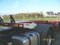 Pratiquement aussitôt un cavalier m'enlève mon container, tandis qu'un autre me ramène un que je dois prendre. Il n'est pas encore 20h. Je suis content. Comme d'habitude je sors du parc pour aller sur le parking des bureaux afin de remplir mes papiers et fixer le container au chassis. J'en profite aussi pour mettre un cadenas. Je pose mon cadenas sur l'aile d'une roue de la remorque pour fermer le twix. C'est alors que je vois que le container est mal positionné. Si les deux coins avant sont en place, les deux arrières sont à coté du trou. Aussitôt je fais demi-tour, et je retourne sur la zone. J'arrive à me faire comprendre par gestes, et un cavalier, me le remet en place. Impeccable.