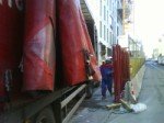 Ca s’agite seulement à l’arrivée sur la Francilienne, et encore, rien de mirobolant. Les choses se compliquent juste un peu sur la N19 vue que je la prends en direction de la capitale. Mon entrepôt est dans une petite zone la bordant, j’y suis avec une demi heure d’avance sur le programme. Je me dis que c’est tant mieux car l’enseigne n’a pas la réputation d’ être violente à la tâche. Néanmoins un cariste me prends en charge de suite et m’aide même à tirer bâches, planches et sangles, elle est pas belle la vie? La seule vrai corvée est de jouer du pied de biche pour virer les gros chevrons (cloués au plancher) qui calaient mes tourets bien en place. Il sont en vrai bois d’arbre bien vert et bien lourd.